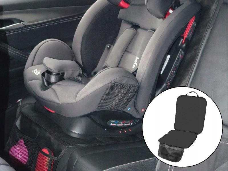 Чехол, благодаря своему универсальному размеру, подходит практически ко всем моделям детских кресел. Его основная функция - защита от грязи и повреждений обивки. В нем есть специальные вырезы для ремней безопасности. В верхней части коврика имеется резинка, которая хорошо фиксирует коврик на месте. Форма не влияет на взрыв подушек безопасности.