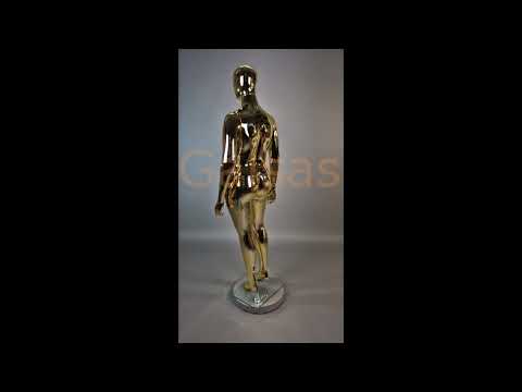 Манекен женский - в полный рост, без лица, яркого золотого глянцевого цвета - для демонстрации и продажи одежды размером "2XL". Материал-прочный пластик. Разборная модель. Основание — 430x300x8 мм, стекло — входит в комплект. Размеры манекена: плечи 45 см, грудь 105 см, талия 84 см, бедра 112 см, рост около 181 см, размер обуви 38-39.